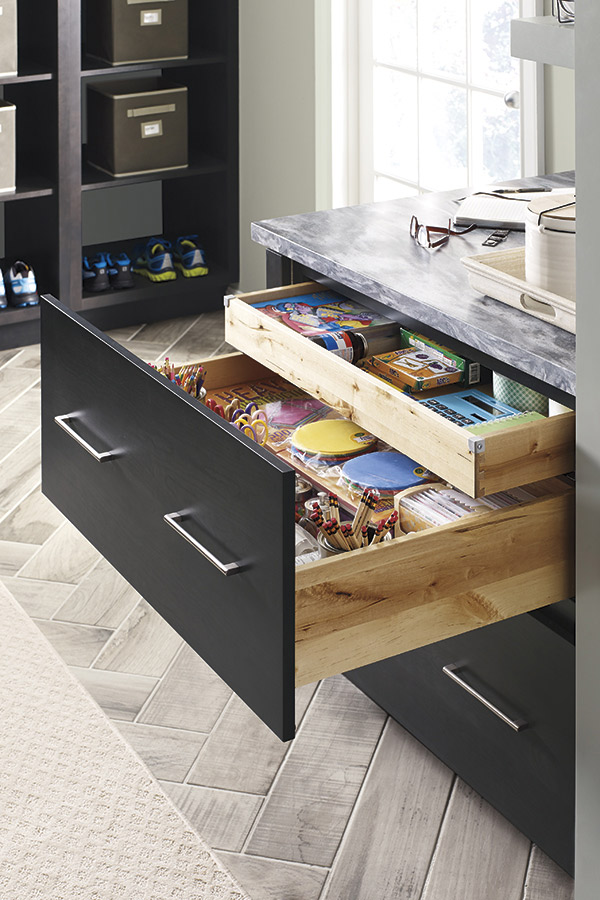 The 10" tall drawers of our Two Drawer Base Cabinet are sturdy and deep so you can store in bulk and search with ease. The roll tray adds additional convenience for keeping smaller items easily accessible. Wide drawers make an excellent choice for creating a streamlined look in contemporary designs.